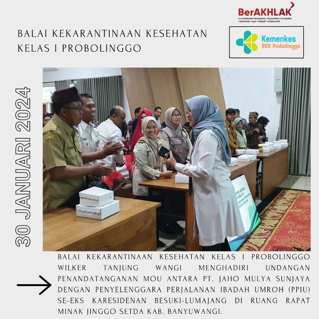 BKK KELAS I PROBOLINGGO WILKER TANJUNG WANGI MENGHADIRI UNDANGAN PENANDATANGANAN MOU DALAM PENYELENGGARAAN PERJALANAN IBADAH UMROH BERTEMPAT DI RUANG RAPAT MINAK JINGGO SETDA KAB. BANYUWANGI