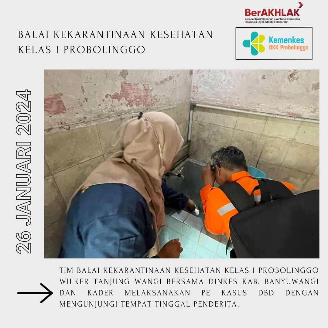 BKK KELAS I PROBOLINGGO WILKER TANJUNG WANGI BERSAMA DINKES KAB. BANYUWANGI DAN KADER MELAKSANAKAN PE (PENYELIDIKAN EPIDEMIOLOGI) KASUS DBD DENGAN MENGUNJUNGI TEMPAT TINGGAL PENDERITA